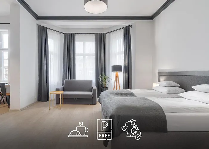 Localizado apenas 550 m de Roman Catholic Parish of St. John the Baptist, o Aparthotel Platinum Estetino de 4 estrelas dispõe de Wi-Fi na propriedade e de parque de estacionamento privado no local. A sua localização boa permite um fácil acesso a Church of Holy Heart of Jesus in Szczecin, que fica a apenas 7 minutos a pé de distância.
